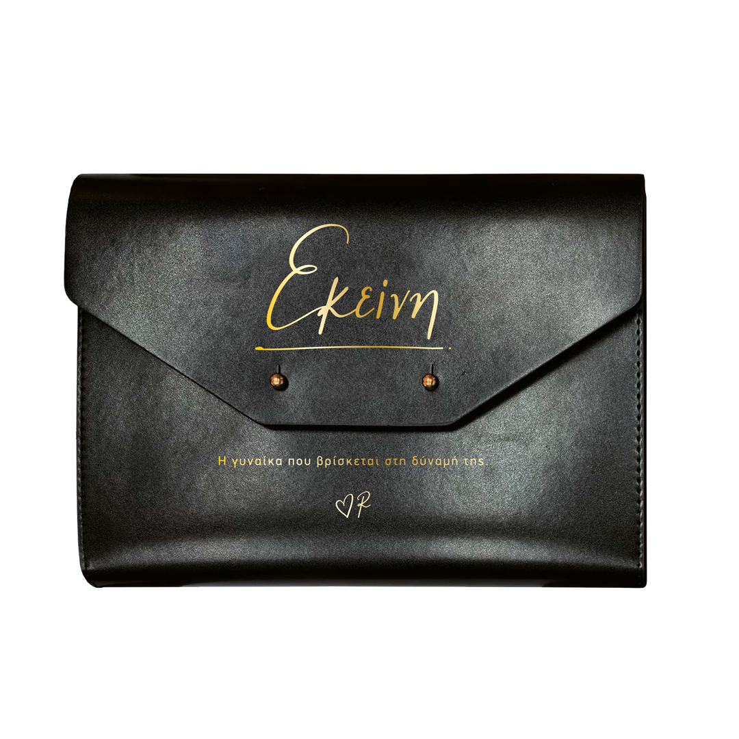 Ατζέντα «Εκείνη» – κομψή μαύρη με δερμάτινη θήκη και χρυσές λεπτομέρειες. Ένα ιδιαίτερο κομμάτι αφιερωμένο στη γυναίκα που βρίσκεται στη δύναμή της.