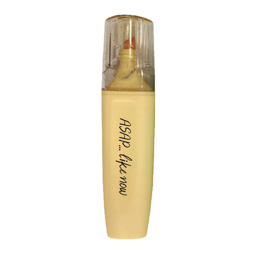 Μαρκαδόρος Υπογράμμισης «ASAP...like now» – σε κίτρινη απόχρωση με άρωμα ανανά. Ιδανικός για να τονίζει τις πιο σημαντικές σημειώσεις σου με χρώμα, φρεσκάδα και χιούμορ.